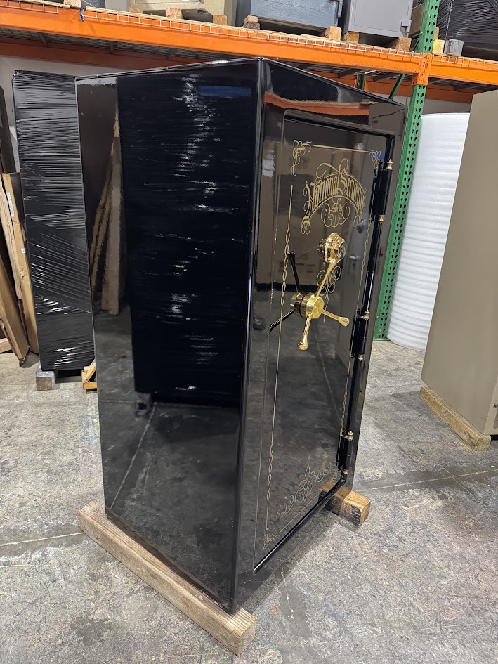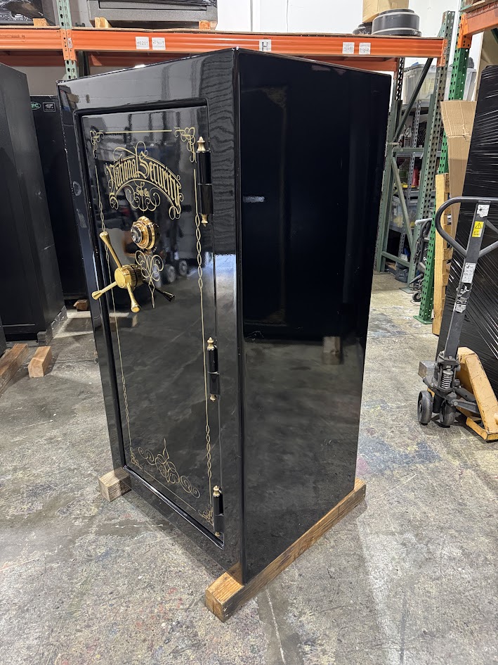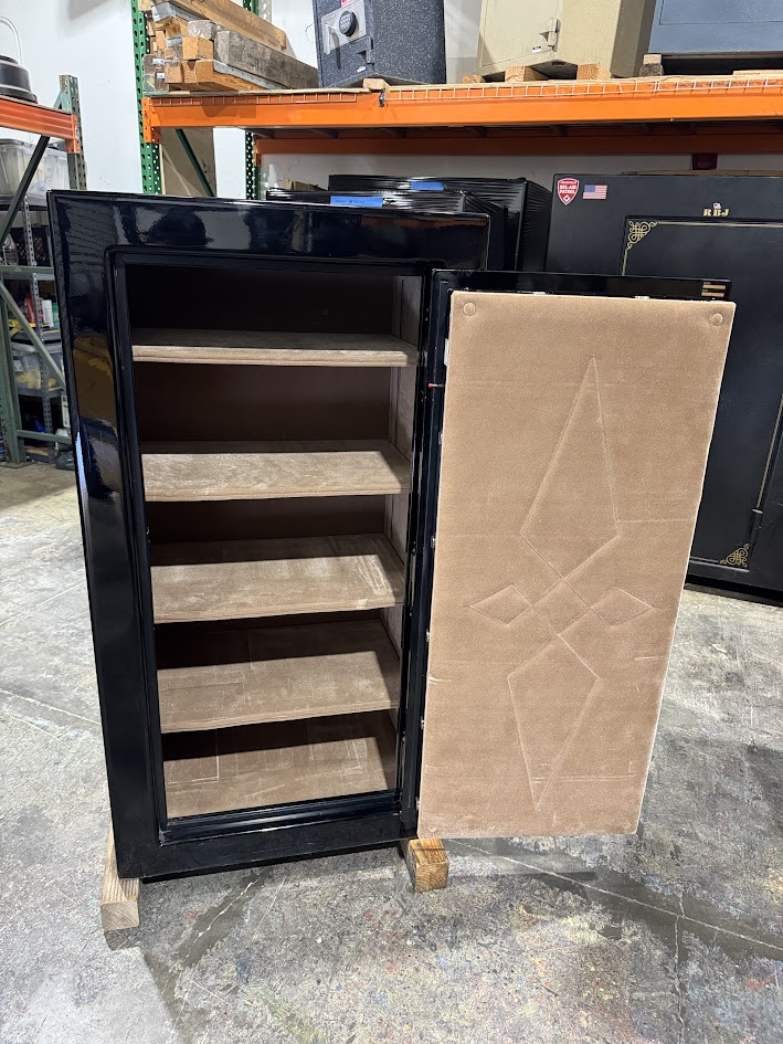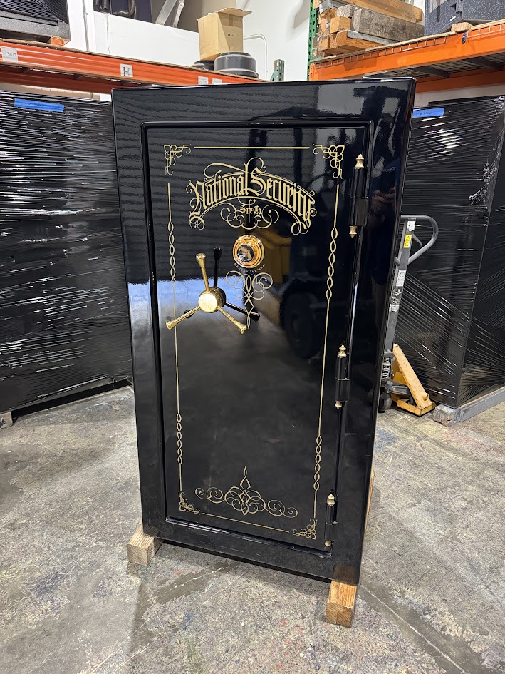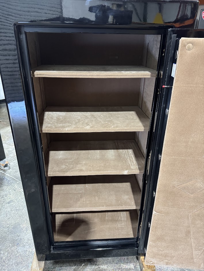 This used 1997 National Security Magnum 32 is in incredible condition. This safe has very few cosmetic blemishes and comes equipped with both the original shelved interior and an aftermarket gun rack. Its mechanical dial lock has been inspected and is in excellent working order. Judging by the original shelves, lock, and handles, this safe looks like it was hardly used at all. These safes were top of the line in the late 90’s and this one is equipped with several uncommon and very desirable factory options: The 1″ laminate plate steel door, 1/4″ outer body, and additional inner steel liner really set this apart from other home/gun safes. This safe is an incredible example of what National Security used to build, and is considered to be a collector’s item among many safe experts.